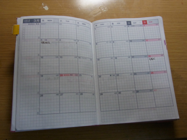 サイズも大体文庫サイズで(140×90mm)、マンスリー、月曜始まり、ソフトカバー、スピン付。