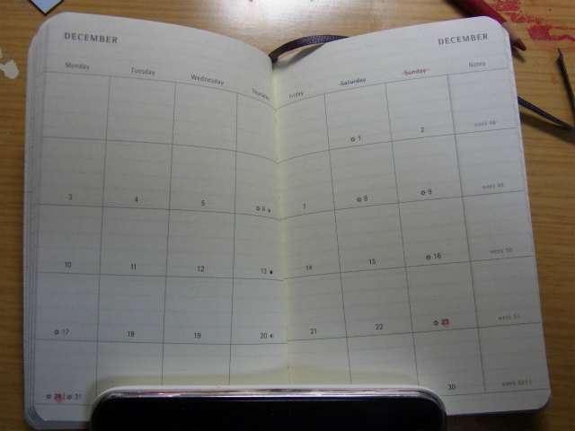 …えー、話し戻すとモレスキンね、中身1色刷りなんで土日にいろついてないんすよ。