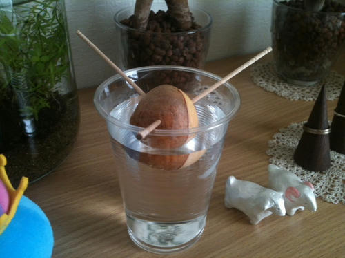 先輩が食べてたアボカドの種もらった