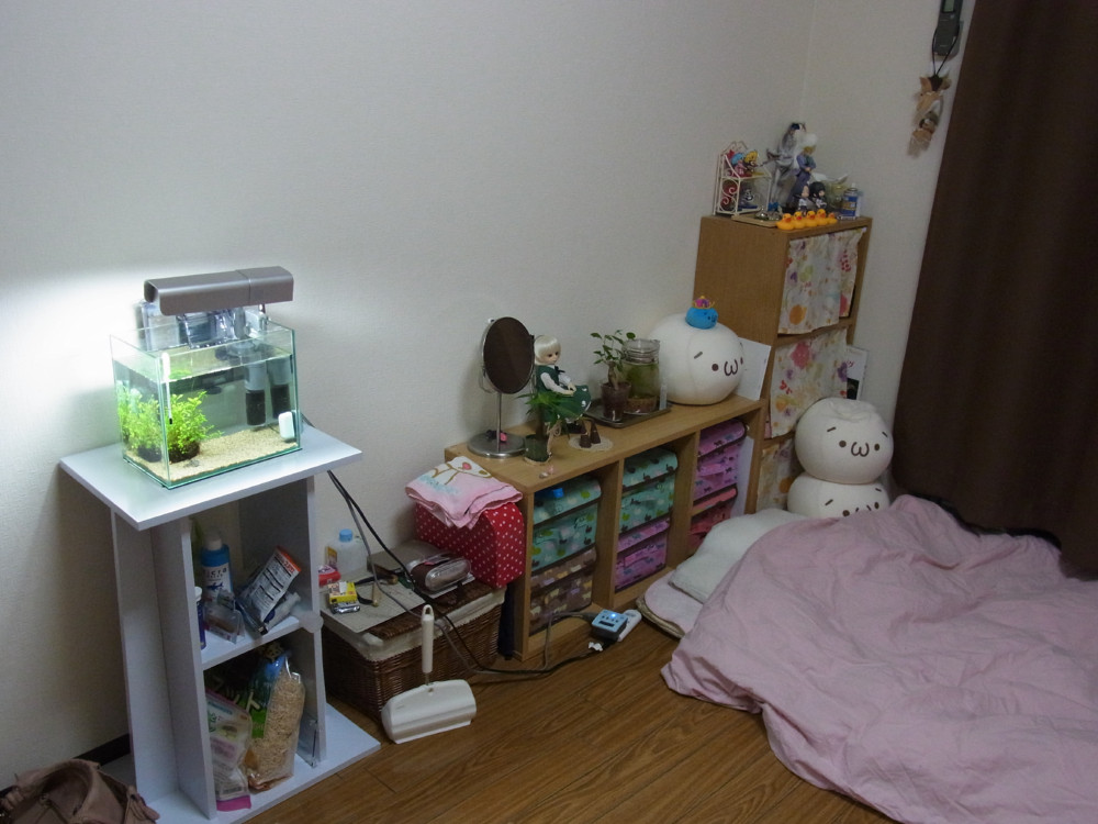 まだこたつ布団だしてなかったり水槽が小さかったり